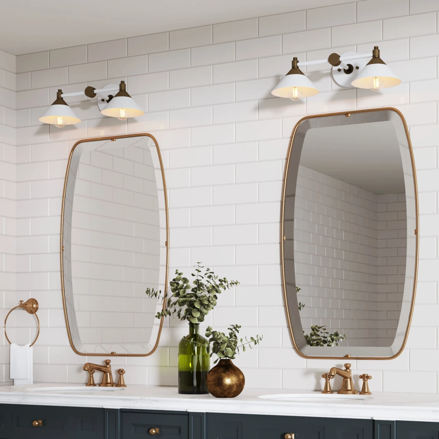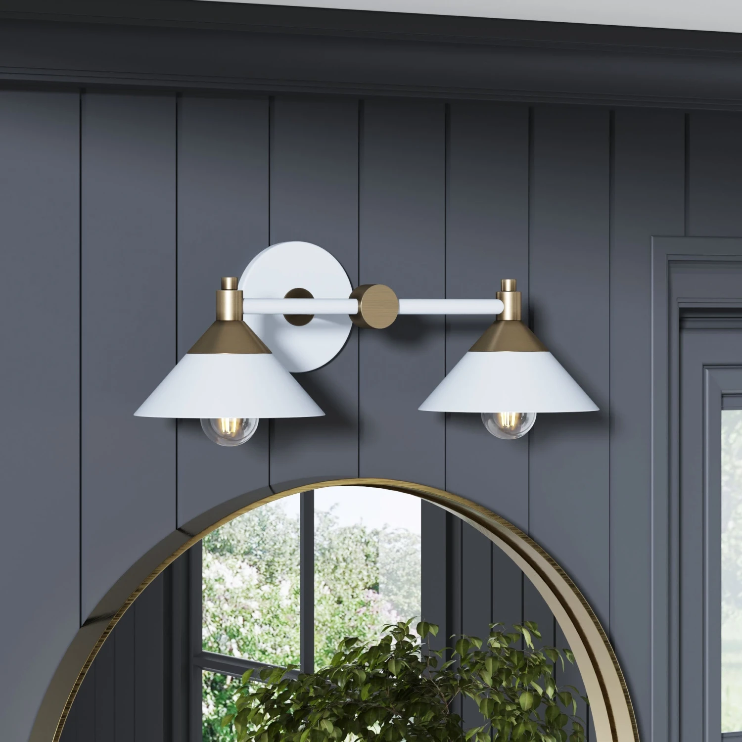 Meet Frank, our two-bulb vanity light that’s the definition of versatile. With a vintaged brass and flat white finish, Frank fits seamlessly into any style—whether your home is beautifully boho, mid-century modern, or even modern farmhouse, Frank has a style that’s sure to make your home shine. Hang over a bathroom mirror for that picture-perfect selfie lighting, over a window for a bit of extra light in that reading nook, or even in the kitchen to illuminate the way to those midnight snacks. Frank is even rated for damp locations, so you can use in your bathroom with the confidence that it will withstand the test of time (and all of those steamy bubble baths).