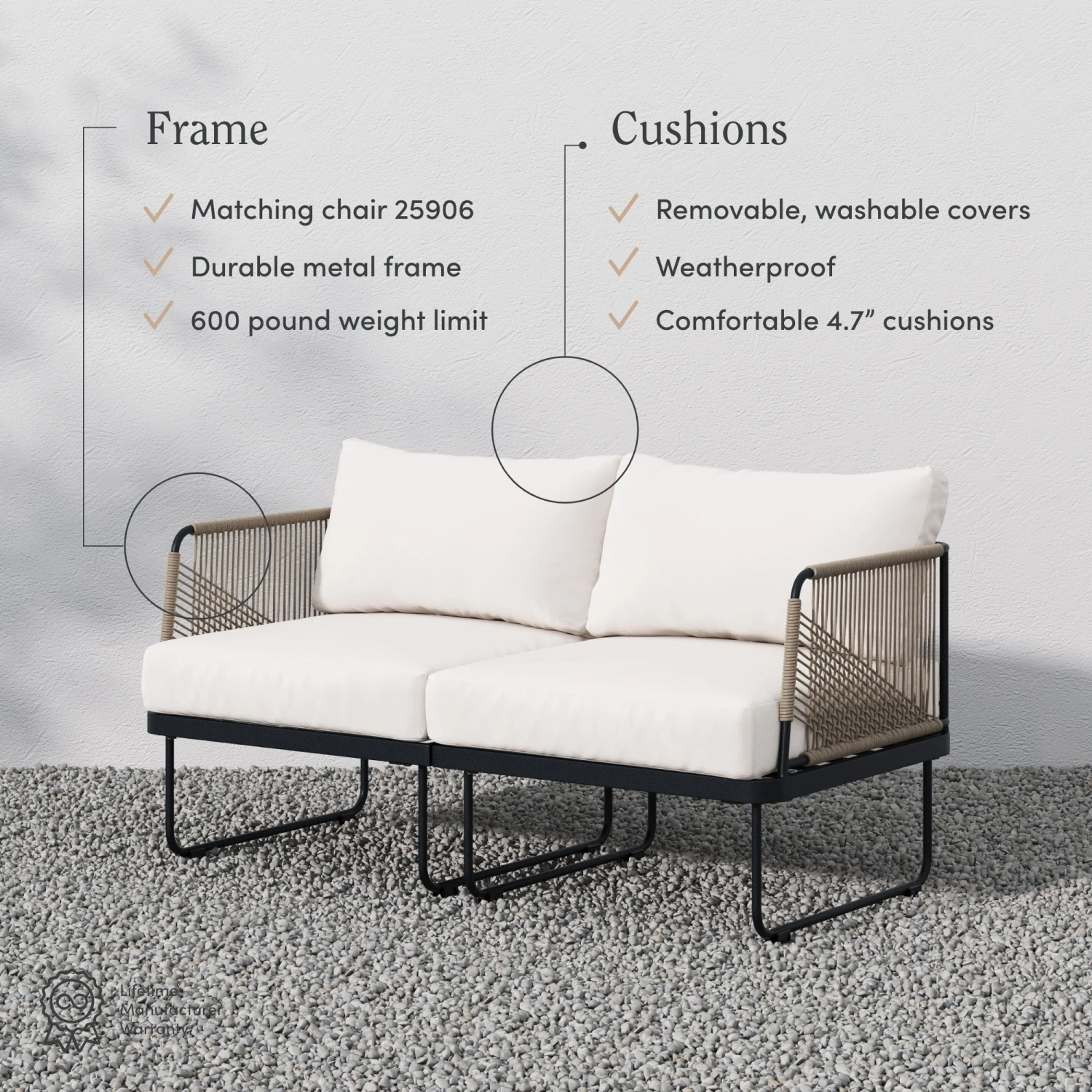 Introducing the perfect addition to your bohemian outdoor living space—the Isla Outdoor Loveseat! Designed with your comfort and convenience in mind, this loveseat features removable and washable cushion covers and a rust-proof aluminum frame and hardware. The ergonomic back of this loveseat sofa was designed to provide optimal comfort during extended periods of use—outdoor siesta, anyone? This porch furniture boasts high UV fade-resistant and weather-resistant fabric, ensuring that it can withstand the elements (and spilled drinks) for years to come. The plush 4.7” thick foam cushions provide the ultimate comfort. Complete your outdoor loveseat patio furniture set by pairing with the Isla Chairs to create a cohesive seating set—perfect for entertaining guests.
