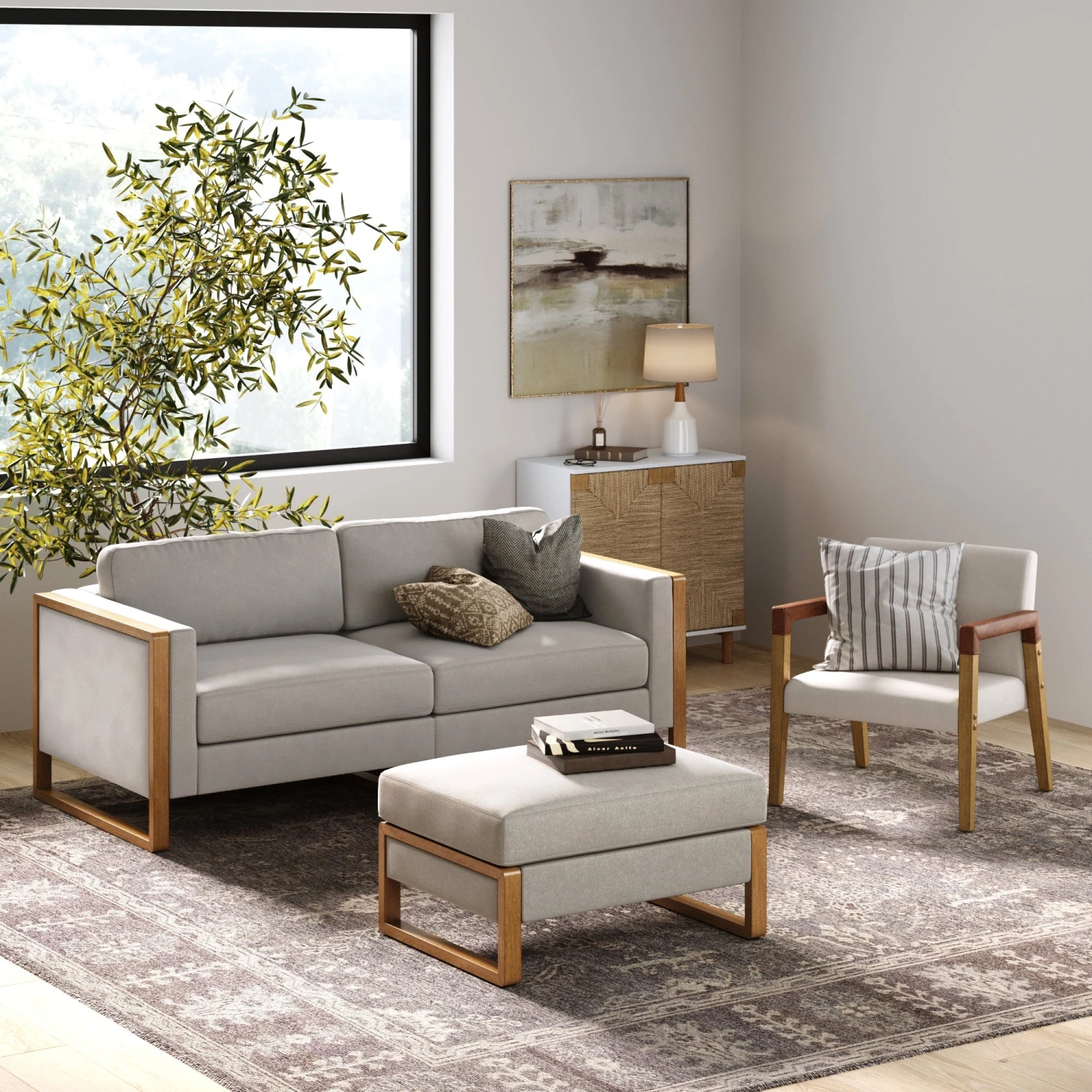 Elevate your living space with the Madison 2-seat sofa and ottoman set. With multiple sofa sizes and configurations to choose from, you have the flexibility to customize your perfect arrangement, whether you prefer a cozy loveseat or a spacious sectional. The collection’s wire brushed leg finish and wood veneer accents lend a touch of sophistication. Plus, its plush back cushions are designed for the ultimate Netflix experience. With supportive springs both in the cushions and frame, these sofas are practically saying, “We’re here for the long haul!” So, go ahead and sink into the softness without a care in the world, because these sofas are all about long-lasting comfort and durability. And when it comes to cleaning, just a friendly reminder that the removable cushion covers are all about that dry cleaning life.