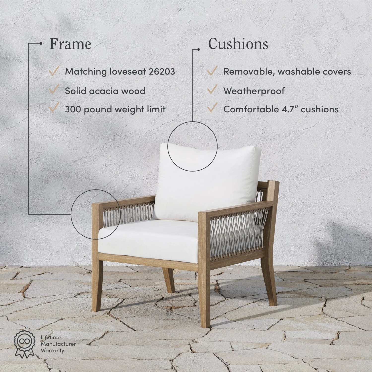 - Weatherproof solid acacia wood frame