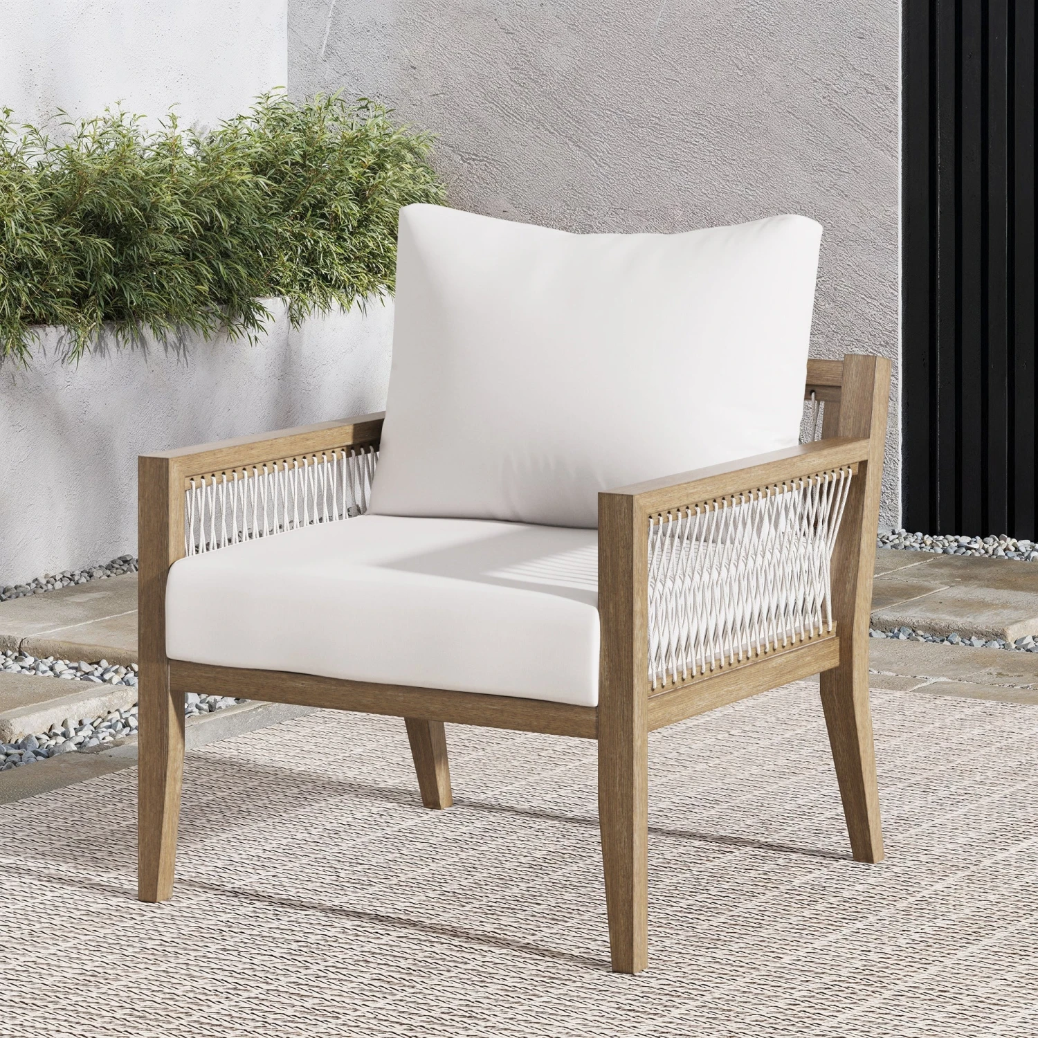 Experience outdoor comfort at its finest with Freya, the chair that combines bohemian beauty with unmatched coziness. Its weatherproof solid acacia wood frame and removable, washable cushion covers ensure durability and easy maintenance. Relax against the ergonomic back, designed for optimal comfort, while the high UV fade-resistant and weather-resistant fabric surrounds you in bliss. With its configurable design, it can be arranged to create the perfect outdoor seating area. Kick back on the plush cushions and enjoy your outdoor space in a whole new way.