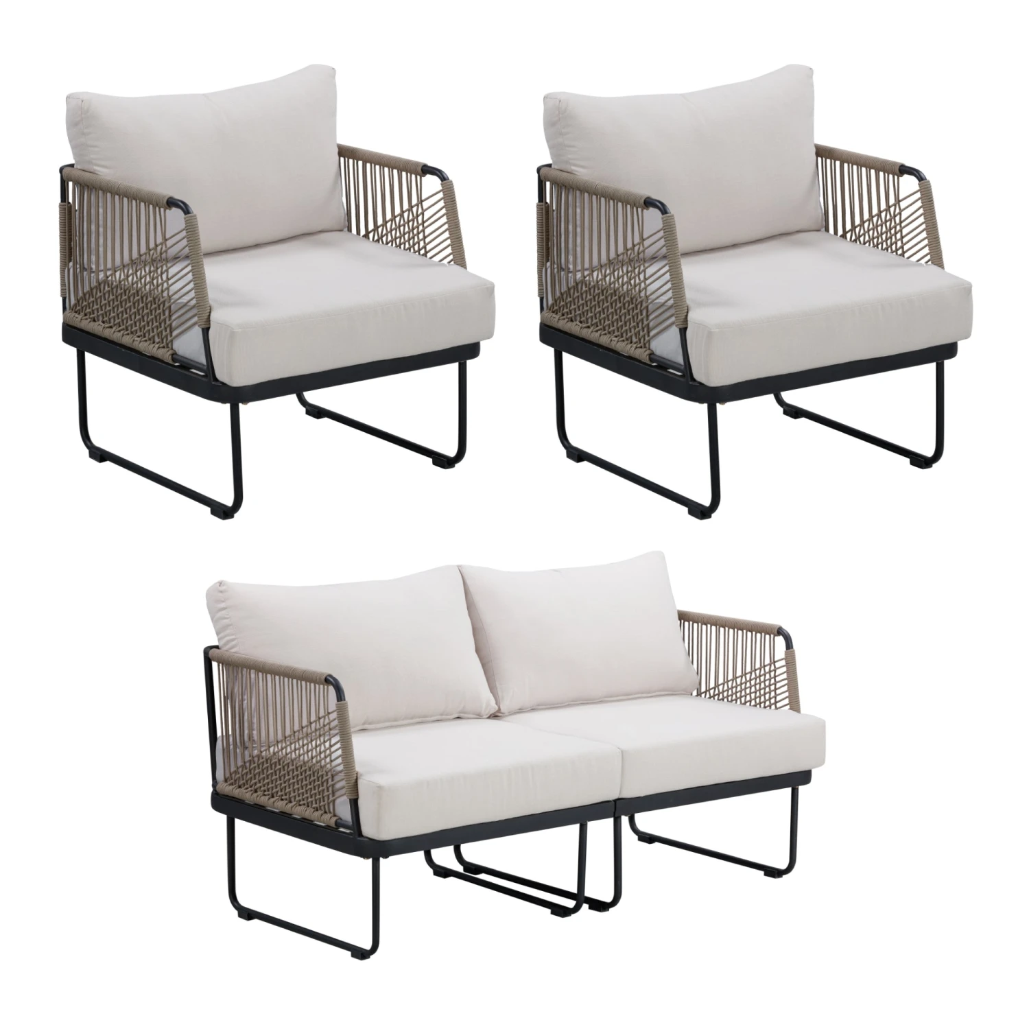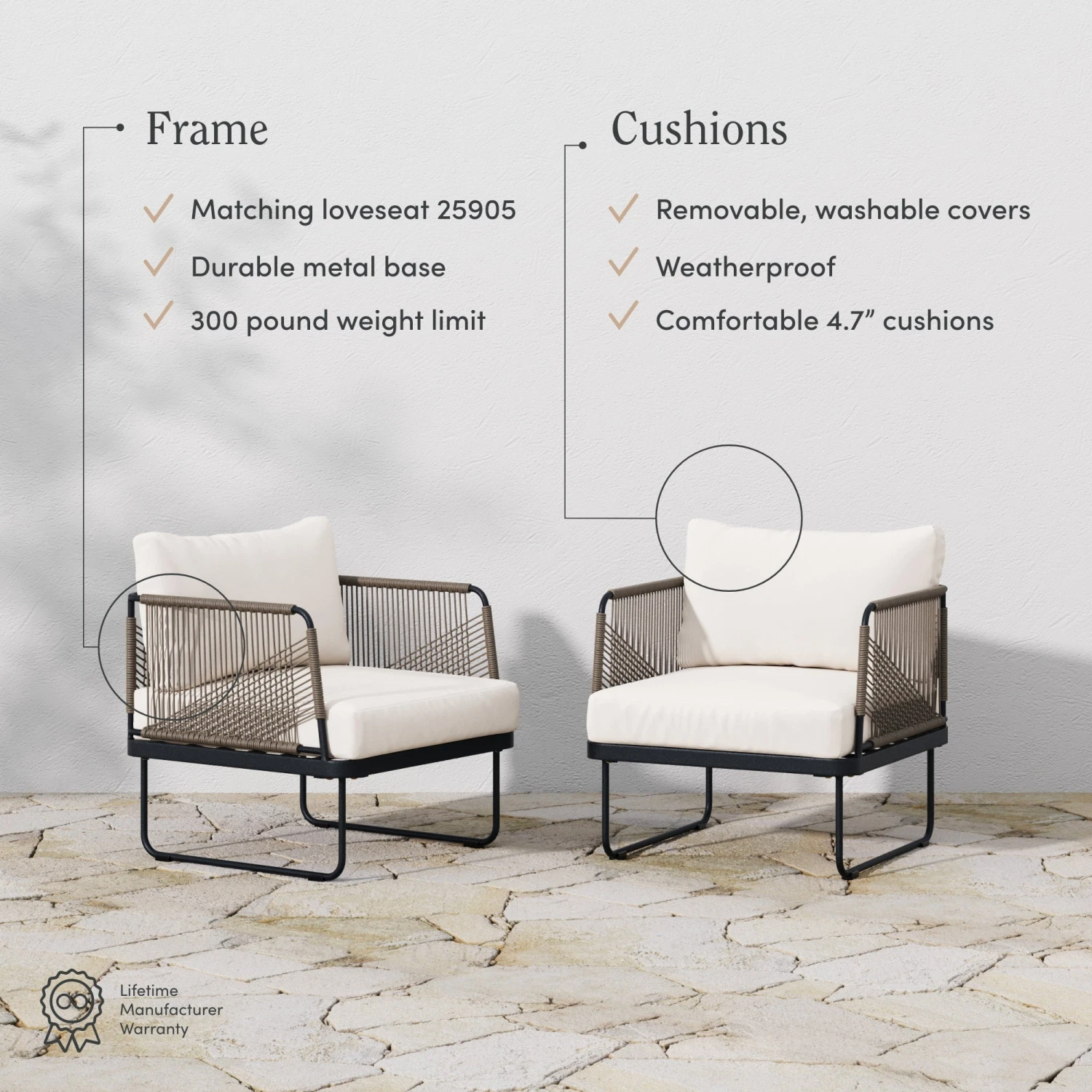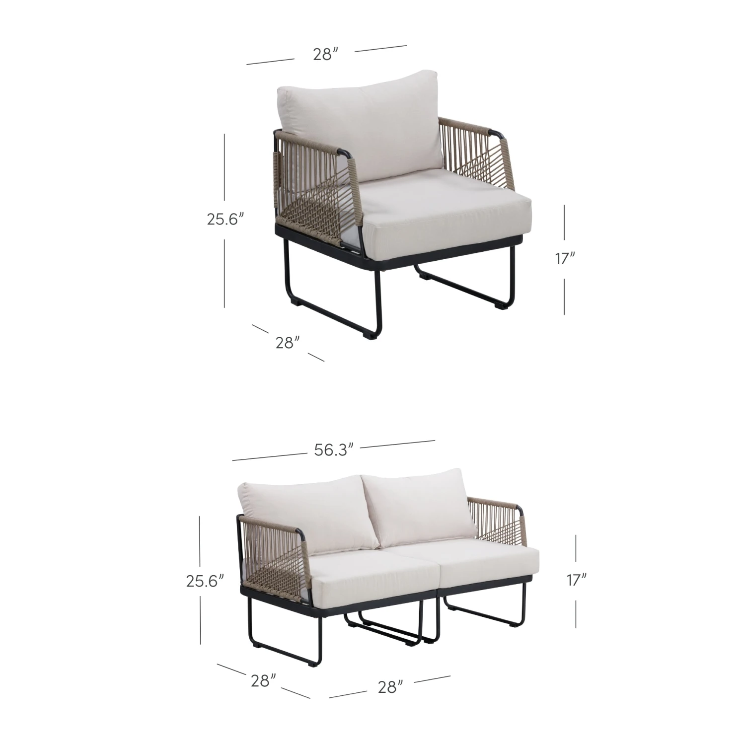 Introducing the perfect addition to your bohemian outdoor living space—the Isla Outdoor Loveseat and Chair set! Designed with your comfort and convenience in mind, this set features removable and washable cushion covers and a rust-proof aluminum frame and hardware. The ergonomic back was designed to provide optimal comfort during extended periods of use—outdoor siesta, anyone? This porch furniture boasts high UV fade-resistant and weather-resistant fabric, ensuring that it can withstand the elements (and spilled drinks) for years to come. The plush 4.7” thick foam cushions provide the ultimate comfort.