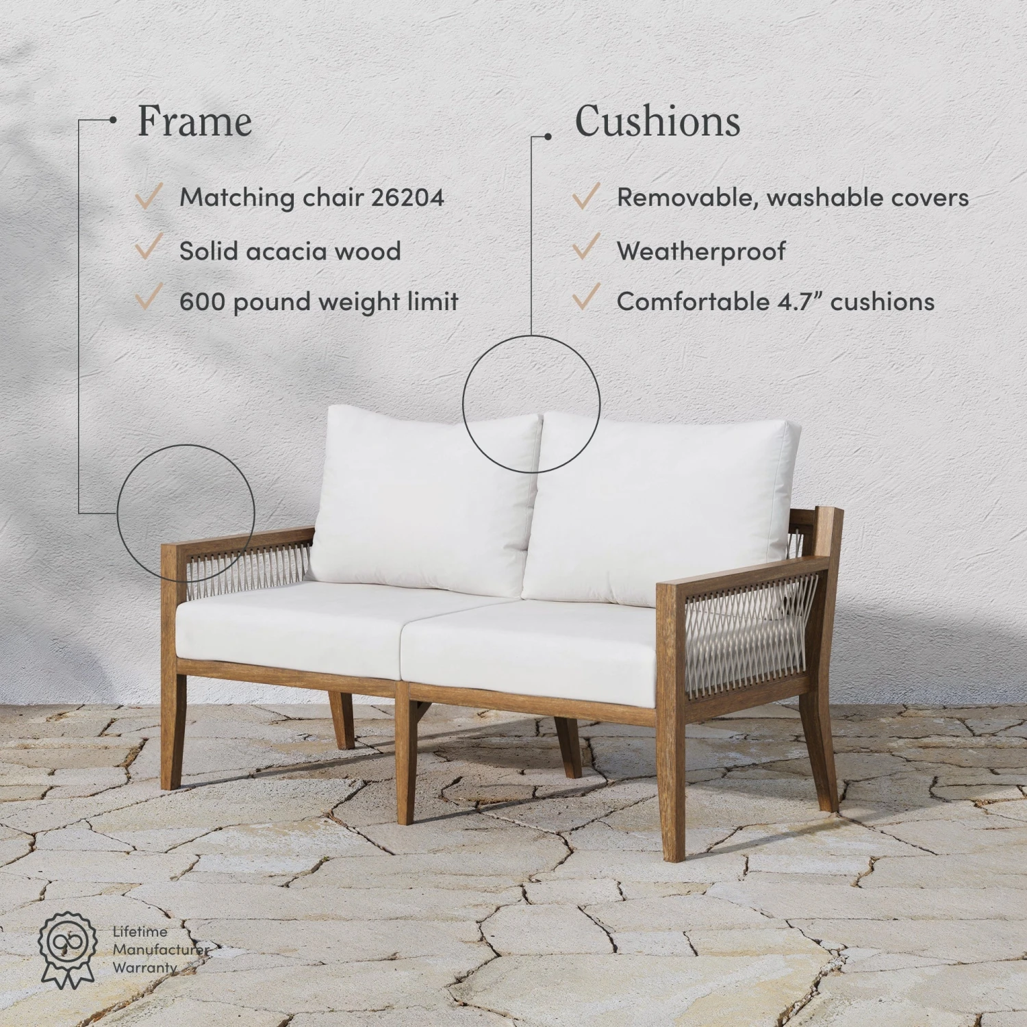 - Weatherproof solid acacia wood frame
