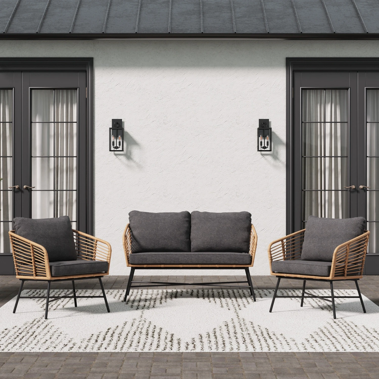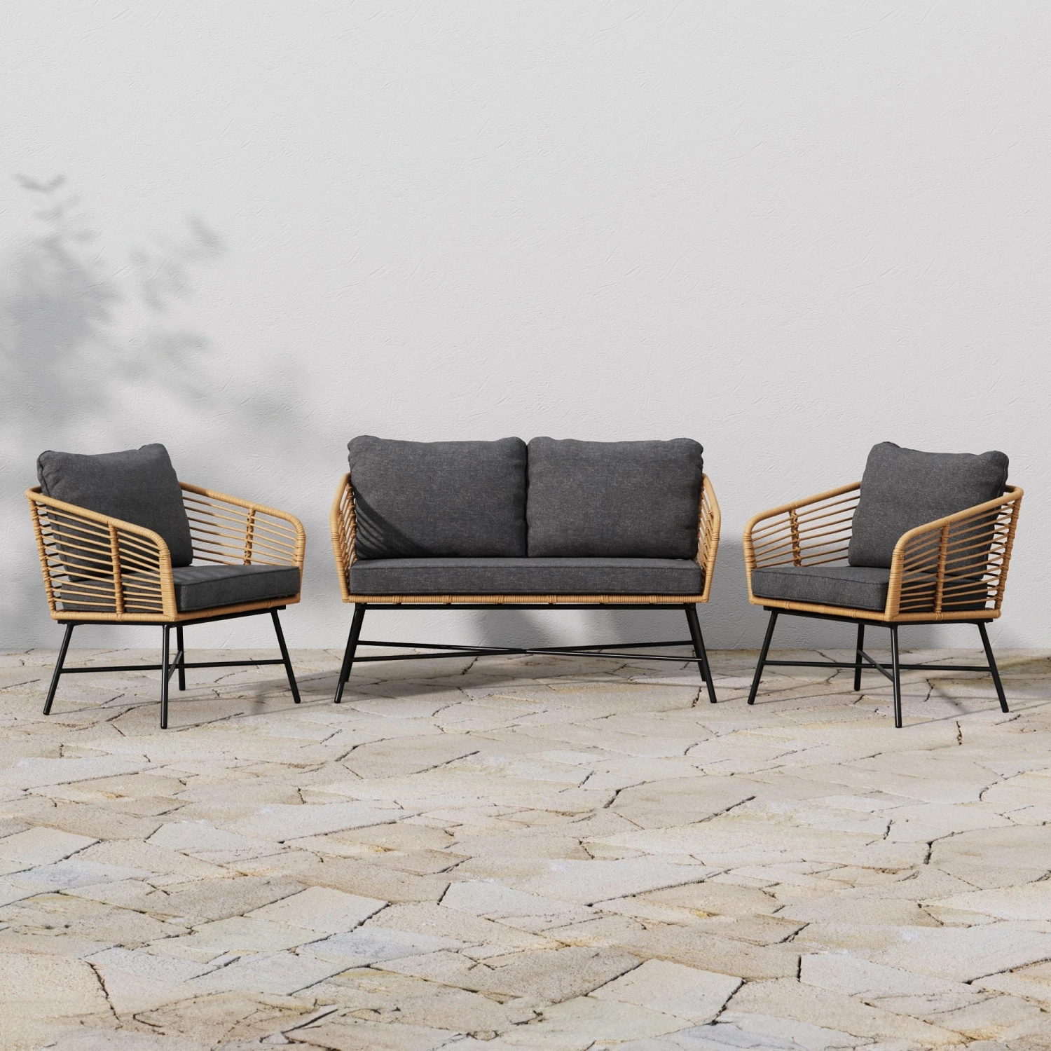- Set of 2 outdoor chairs and 1 loveseat