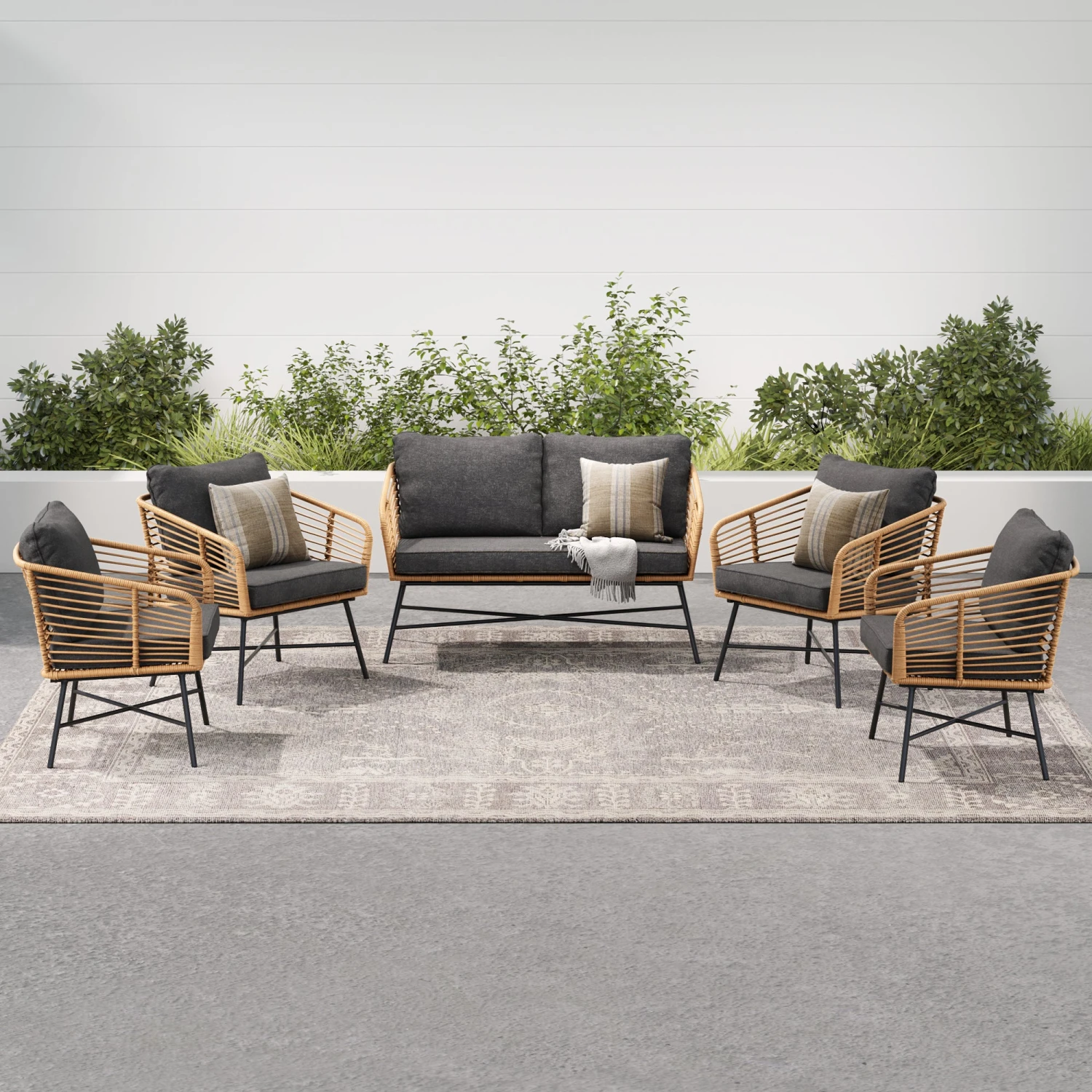 - Set of 4 outdoor chairs and 1 loveseat