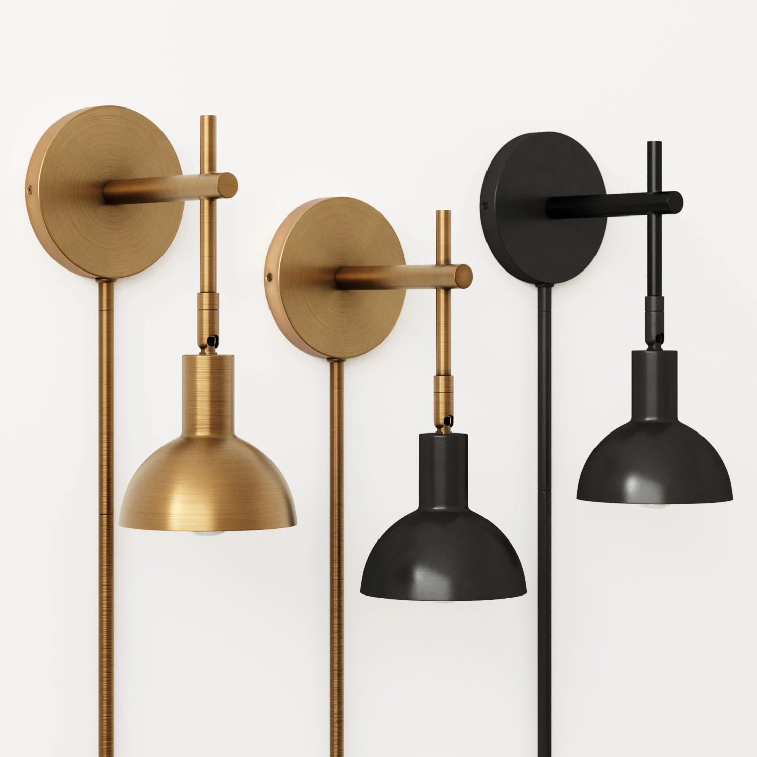 Renters rejoice! Meet Tamlin, our plug-in wall light perfect for reading nooks, living rooms, and bedsides. Extending from a circular wall plate is an elegant vintaged brass finish metal arm with a matte black round bell shade. Its articulating feature allows you to direct the light left or right and is dimmer compatible, for those nights you can’t put your book down. This wall light is a must-have for small spaces, apartments, and townhomes and can be placed in your favorite spot without worry thanks to the included cord cover. Or ditch the plug-in and take it to the next level by getting this light professionally hardwired by an electrician.