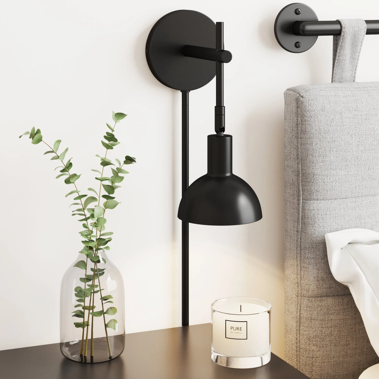 Renters rejoice! Meet Tamlin, our plug-in wall light perfect for reading nooks, living rooms, and bedsides. Extending from a circular wall plate is an elegant black metal arm with a round bell shade. Its articulating feature allows you to direct the light left or right and is dimmer compatible, for those nights you can’t put your book down. This wall light is a must-have for small spaces, apartments, and townhomes and can be placed in your favorite spot without worry thanks to the included cord cover. Or ditch the plug-in and take it to the next level by getting this light professionally hardwired by an electrician.