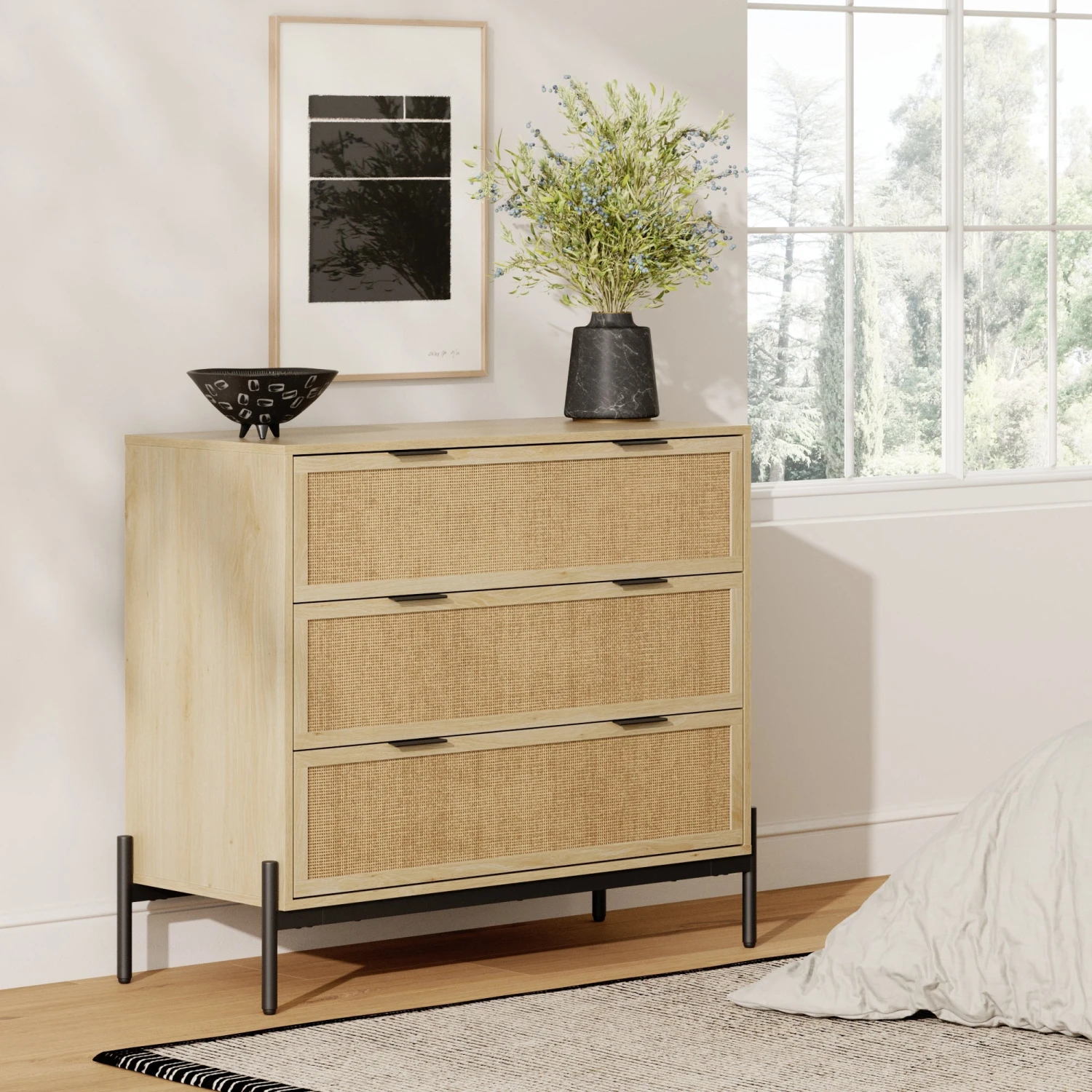 Get ready to fall in love with the Andrew Dresser—a piece that’s as unique and captivating as your personal style. With three spacious drawers that smoothly glide on sturdy metal slides, staying organized has never been this easy. Our unique drawer interlock safety mechanism ensures safety by allowing only one drawer to be open at a time, preventing any tipping hazards. With interchangeable leg options, this dresser allows you to place multiple side-by-side and have them sit flush against each other, providing endless design possibilities. Embrace bohemian charm and make your home uniquely yours with the Andrew Dresser!