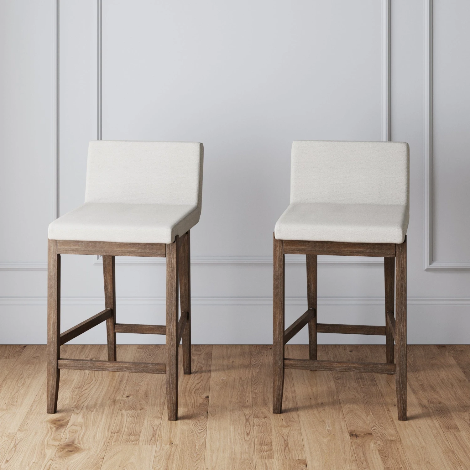 Kick your feet up in style with our set of 2 Gracie bar stools. With an exposed wood back and sleek modern design, Gracie is sure to stun. These bar stools combine a wire brushed dark brown wood finish and a natural textured linen weaved cushion for ultimate comfort and style. They boast a modern silhouette with tapered legs and a curved seat, making these bar stools the star of any kitchen. So grab your drink of choice and sit back in full comfort on these made-to-last bar stools.