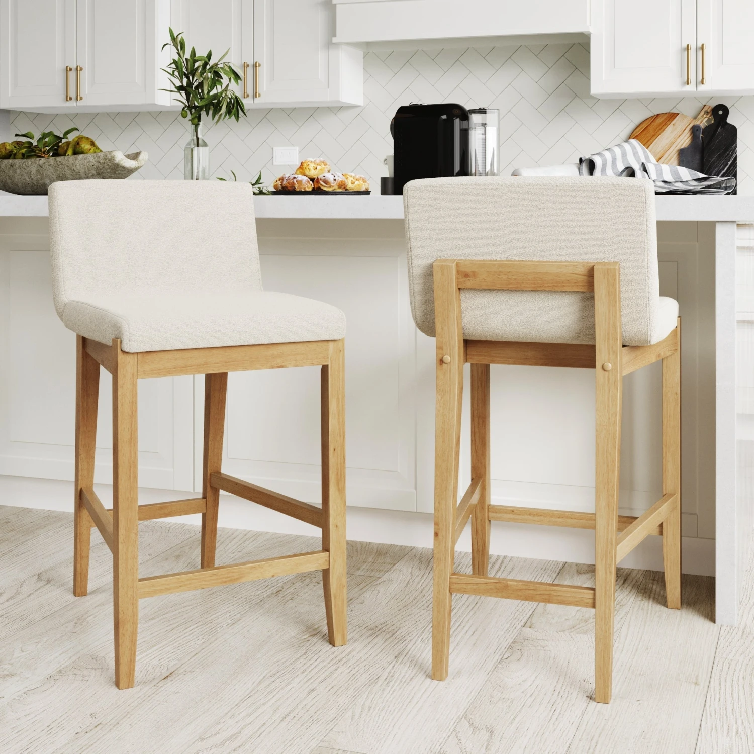 Kick your feet up in style with our set of 2 Gracie bar stools. With an exposed wood back and sleek modern design, Gracie is sure to stun. Gracie combines a natural brown wood finish and a natural textured linen weaved cushion for ultimate comfort and style. These stools boast a modern silhouette with tapered legs and a curved seat, making these bar stools the star of any kitchen. So grab your drink of choice and sit back in full comfort on these made-to-last bar stools.