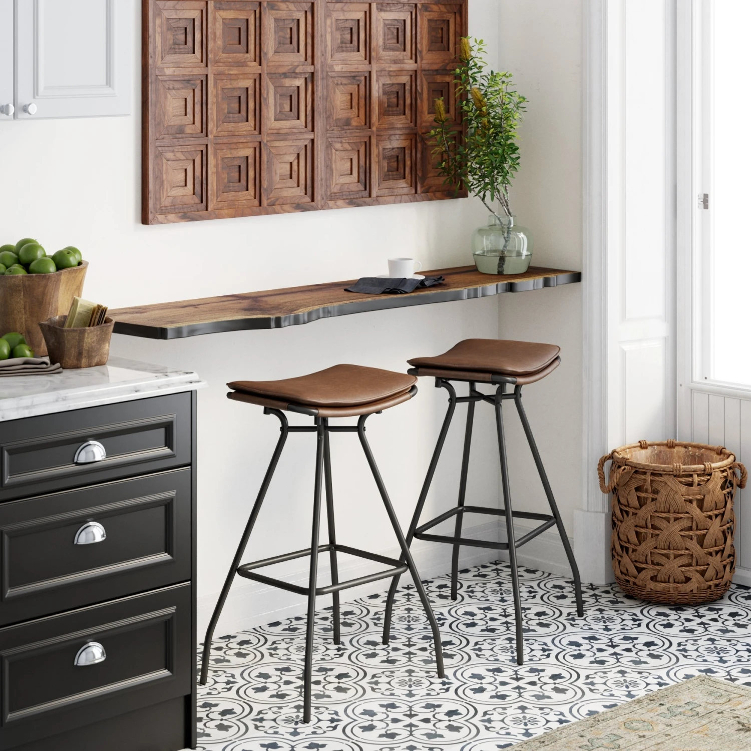 The Dominique bar stool is the perfect addition to your modern industrial kitchen. Dominique has a thick seat cushion covered in distressed vegan brown leather for added style and comfort, as well as perfectly placed footrests to keep your legs comfy—so you can sit and snack for as long as you’d like.