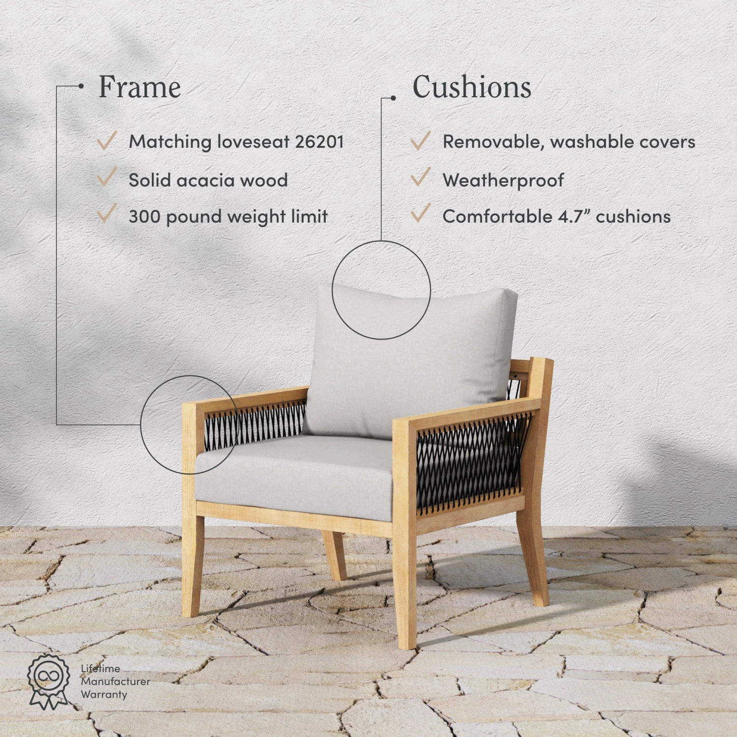 - Weatherproof solid acacia wood frame