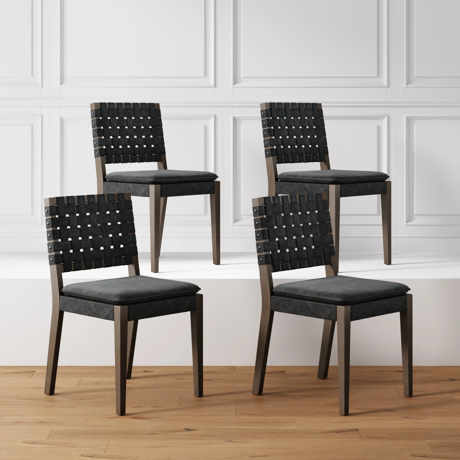 - Hand-woven faux leather backrest