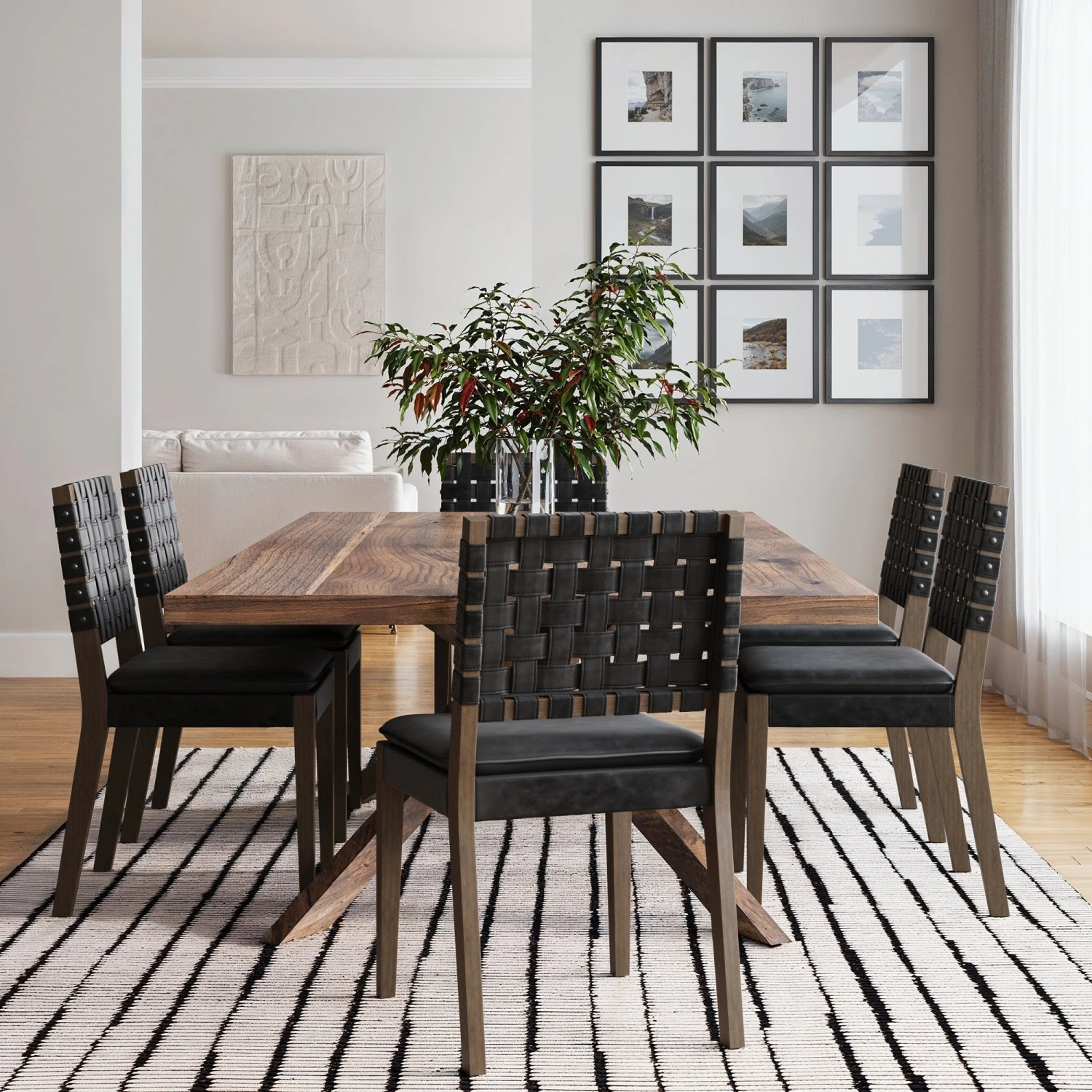 Meet Cohen, your new favorite meal spot! At a cozy 19″ seat height, this dining chair fits perfectly at any dining table. Settle into its comfortably padded saddle seat while you admire the details of its hand-woven faux leather backrest. No more shifting and adjusting—our velcro-secured seat ensures you stay put, so you can relax in style. And speaking of style, Cohen’s solid wood frame not only promises durability but also brings a touch of nature indoors. Pull up a seat and let Cohen make a statement in your space.