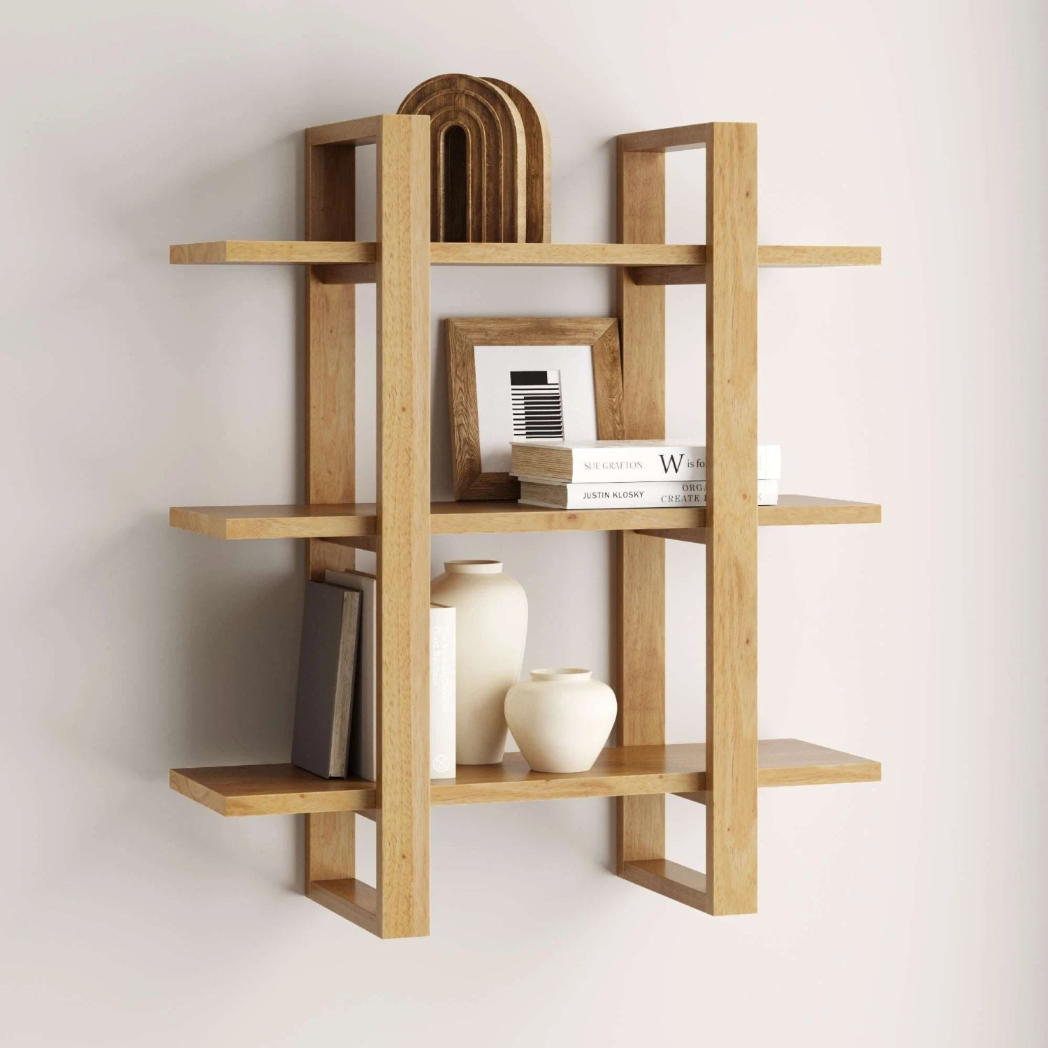 Meet Benji, our modern modular index bookcase that’s sure to make a statement. Its three solid wood shelves and adjustable vertical arms (move them apart, or keep them close together) in a natural brown finish give Benji a modern style with an open and airy feel. Get creative and hang multiple bookcases vertically or horizontally to build the statement bookcase wall of your dreams. There’s room for things of every shape and size on our Benji bookcase!