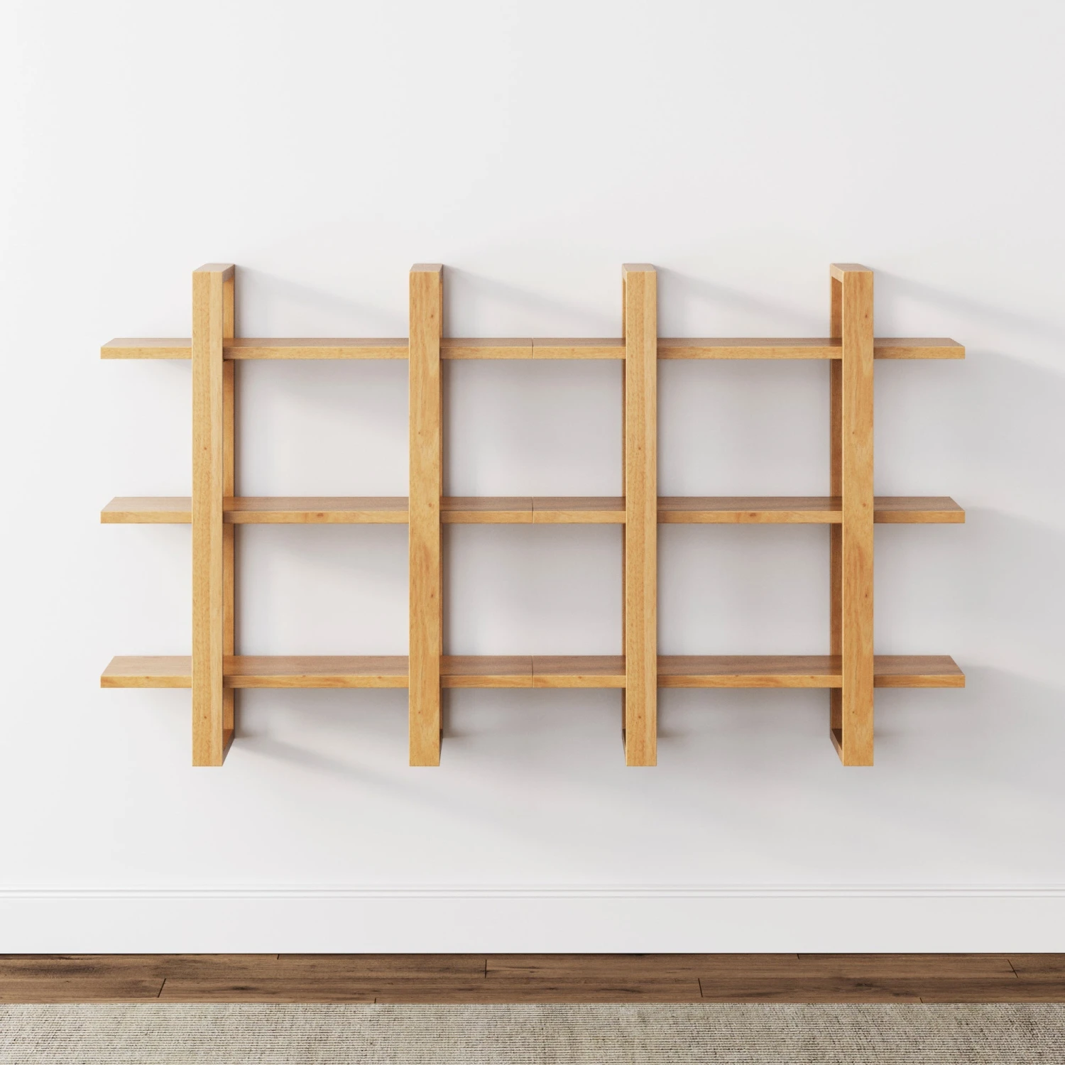 Meet Benji, our modern modular bookcase that’s sure to make a statement. Its three solid wood shelves and adjustable vertical arms (move them apart, or keep them close together) in a natural brown finish give Benji a modern style with an open and airy feel. Get creative and hang multiple bookcases vertically or horizontally to build the statement bookcase wall of your dreams. There’s room for things of every shape and size on our Benji bookcase!