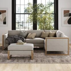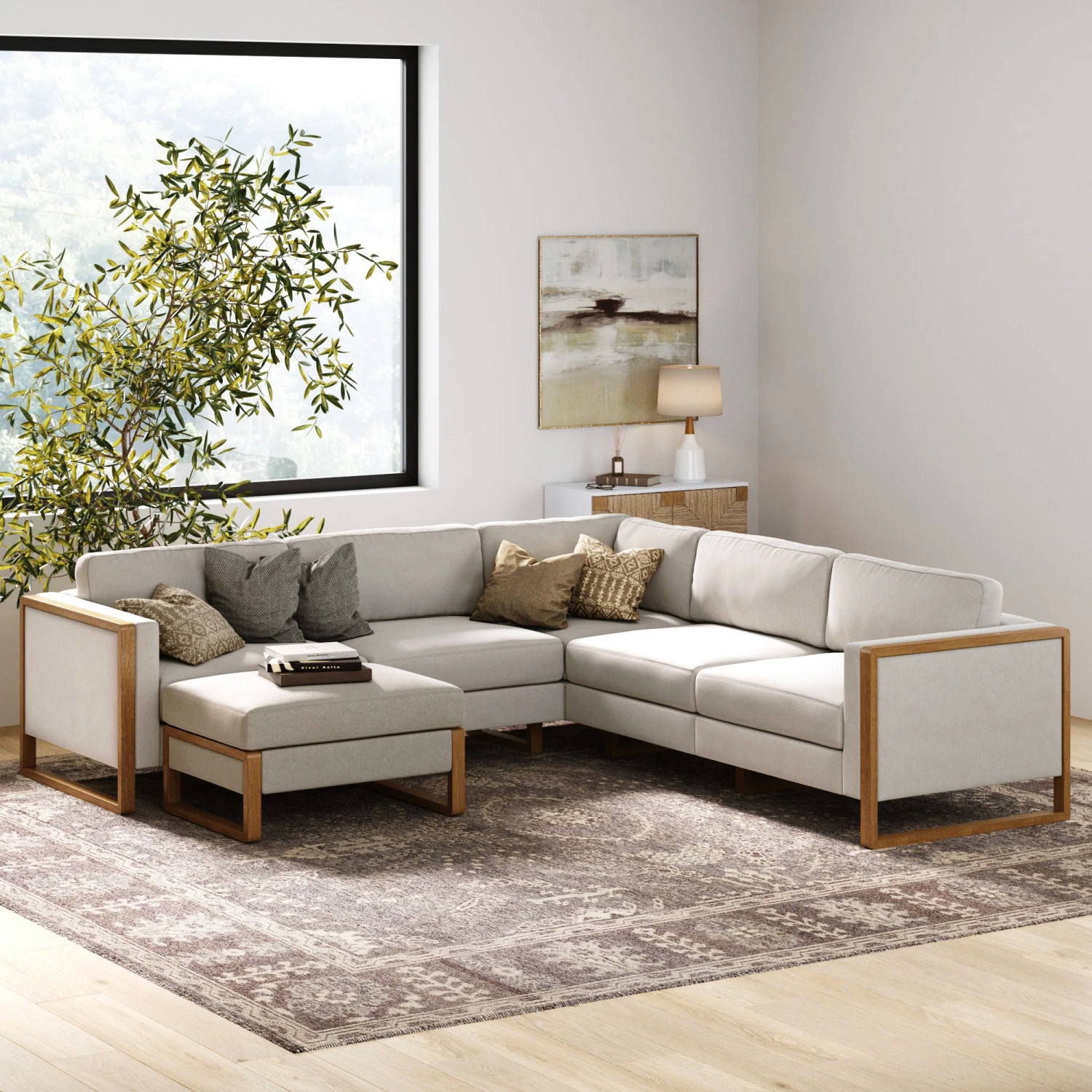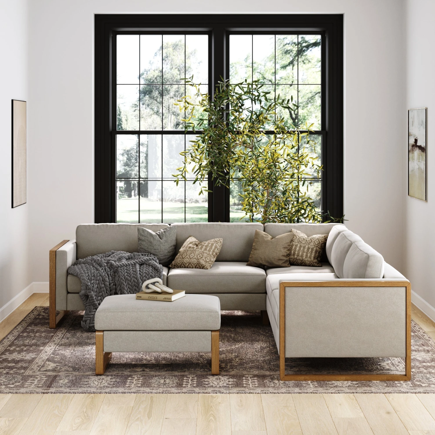 Elevate your living space with the Madison L-shaped 5-seat sectional sofa and ottoman set. With multiple sofa sizes and configurations to choose from, you have the flexibility to customize your perfect arrangement, whether you prefer a cozy loveseat or a spacious sectional. The collection’s wire brushed leg finish and wood veneer accents lend a touch of sophistication. Plus, its plush back cushions are designed for the ultimate Netflix experience. With supportive springs both in the cushions and frame, these sofas are practically saying, “We’re here for the long haul!” So, go ahead and sink into the softness without a care in the world, because these sofas are all about long-lasting comfort and durability. And when it comes to cleaning, just a friendly reminder that the removable cushion covers are all about that dry cleaning life.