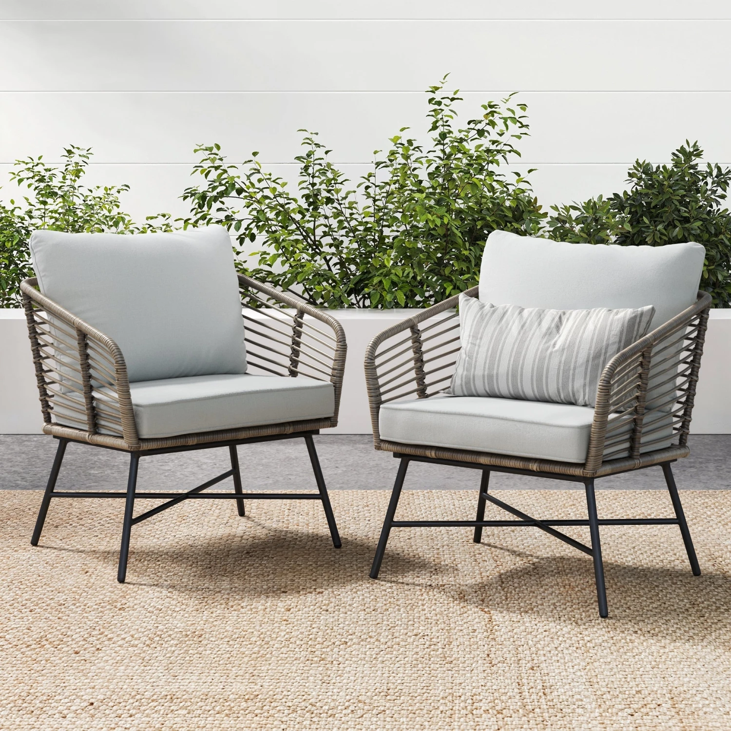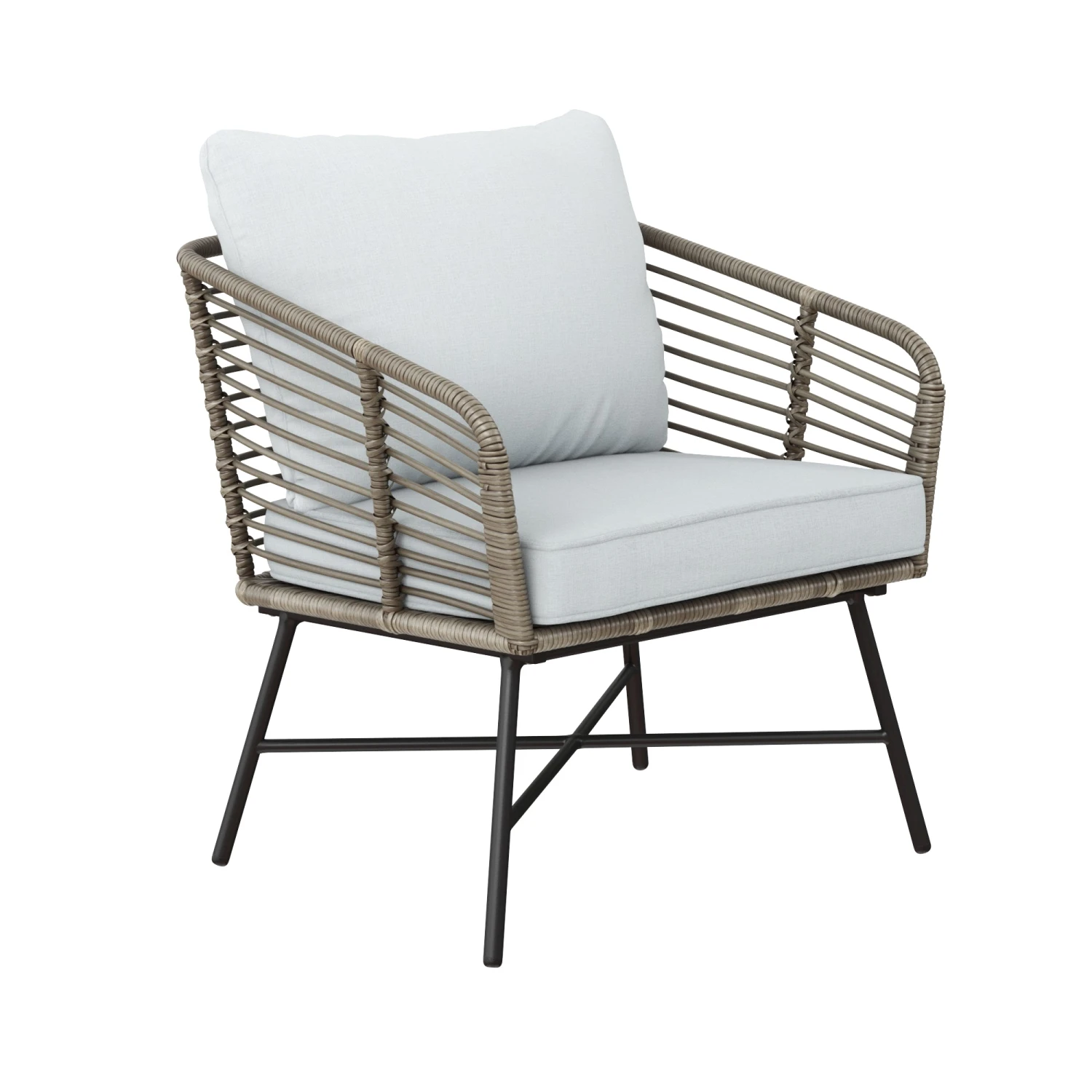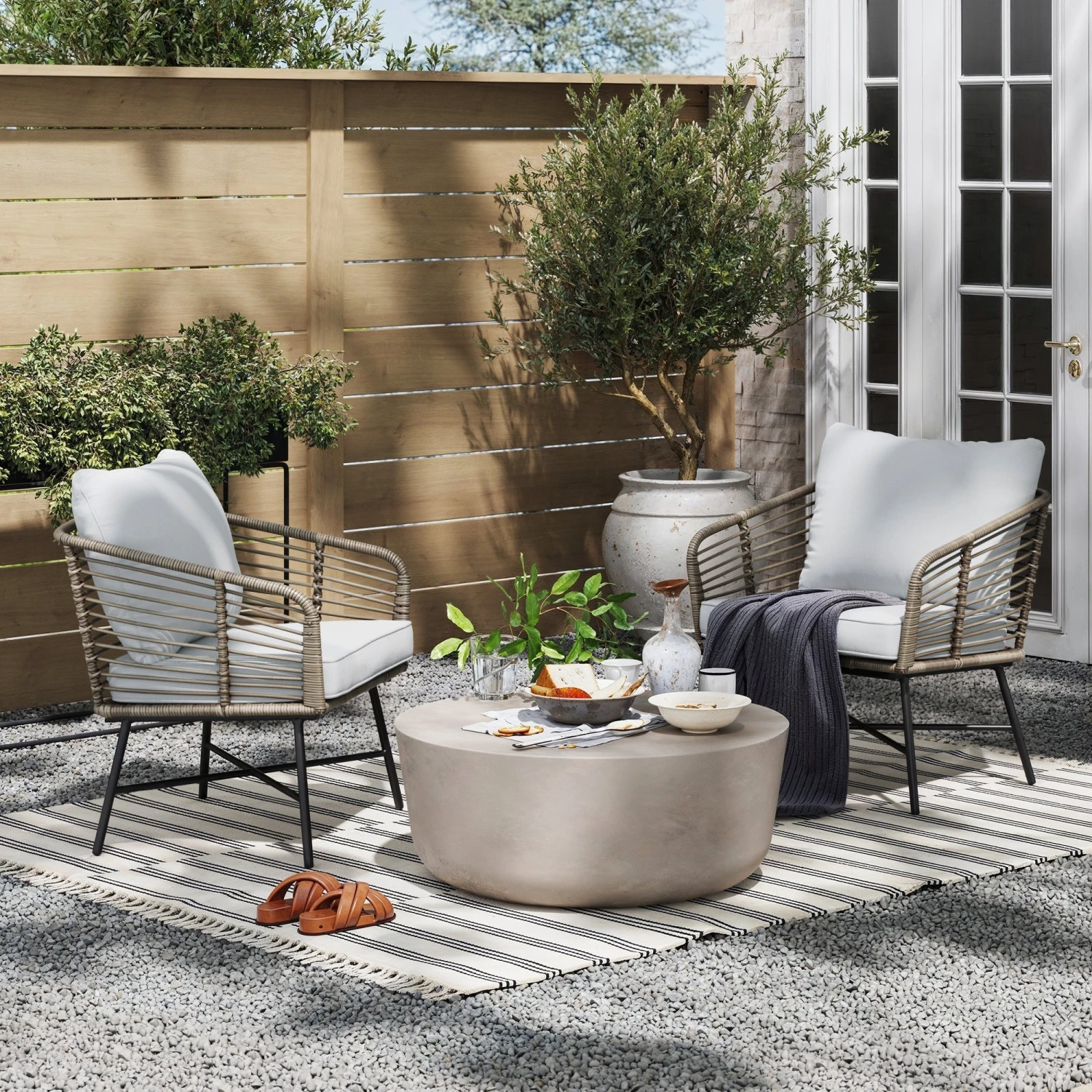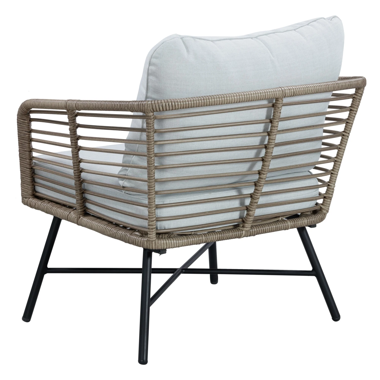 Introducing the perfect addition to your bohemian outdoor living space—the Flow Chair set! Designed with your comfort and convenience in mind, this patio chair set of 2 features removable and washable cushion covers and rust-proof aluminum frame and hardware. The ergonomic back of this wicker porch chair was designed to provide optimal comfort during extended periods of use—outdoor siesta, anyone? Flow boasts high UV fade-resistant and weather-resistant fabric, ensuring that it can withstand the elements (and spilled drinks) for years to come. The synthetic resin wicker-wrapped frame details add a touch of sophistication and style, while the plush 3.5″ thick foam cushions provide the ultimate comfort. Bonus! You can pair these armchairs with the Flow Loveseat to create a cohesive seating set, or use them as patio dining chairs—perfect for entertaining guests.