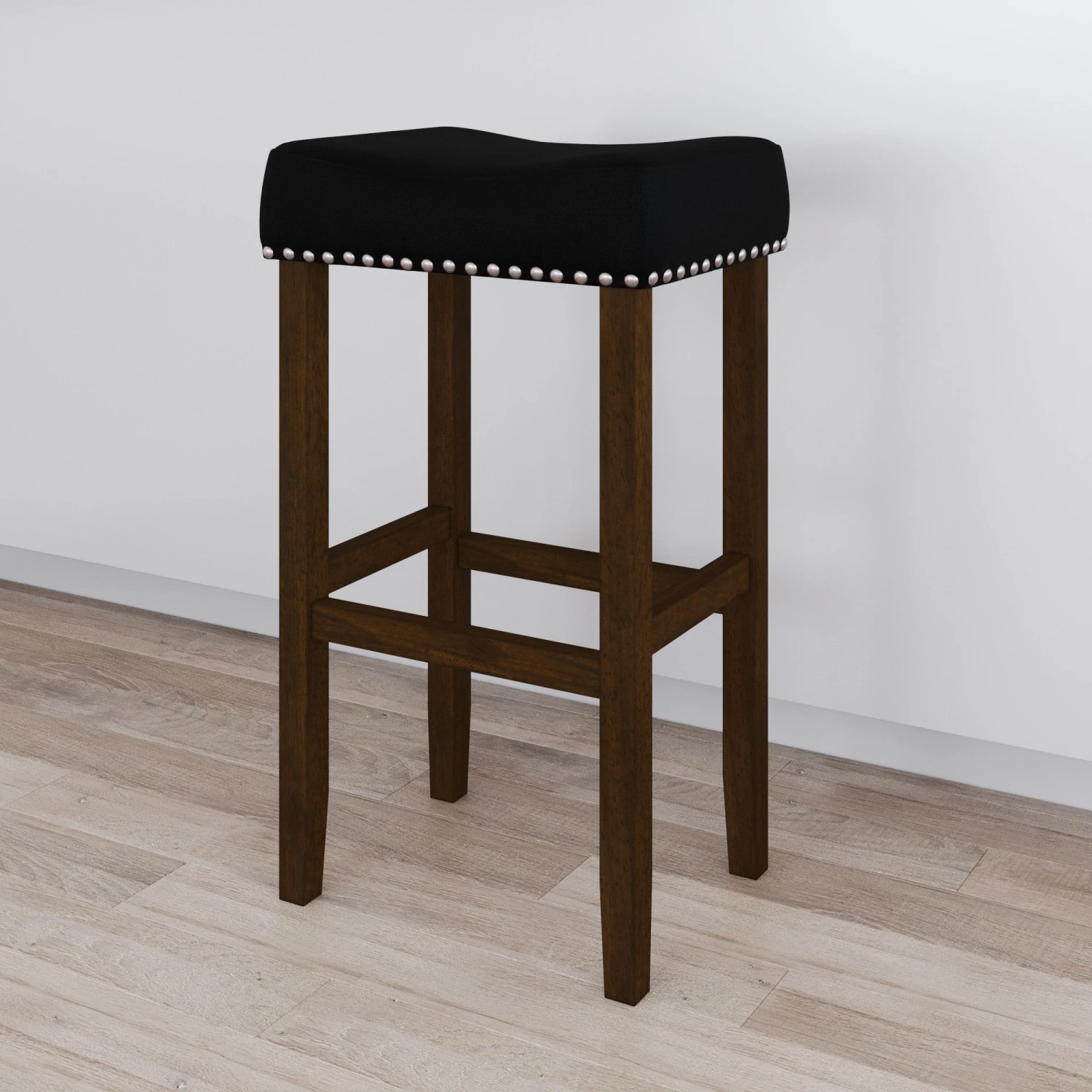 Add some charming farmhouse vibes to your home with Hylie stool. The Hylie stool is beautifully crafted from solid wood with rectangular saddle seating finished with soft upholstered fabric seat and vintage nailhead details. Durable curved thick cushions to sit comfortable for hours. Stylish yet practical built in foot rest, these create perfect accents to spruce up your kitchen or home bar.