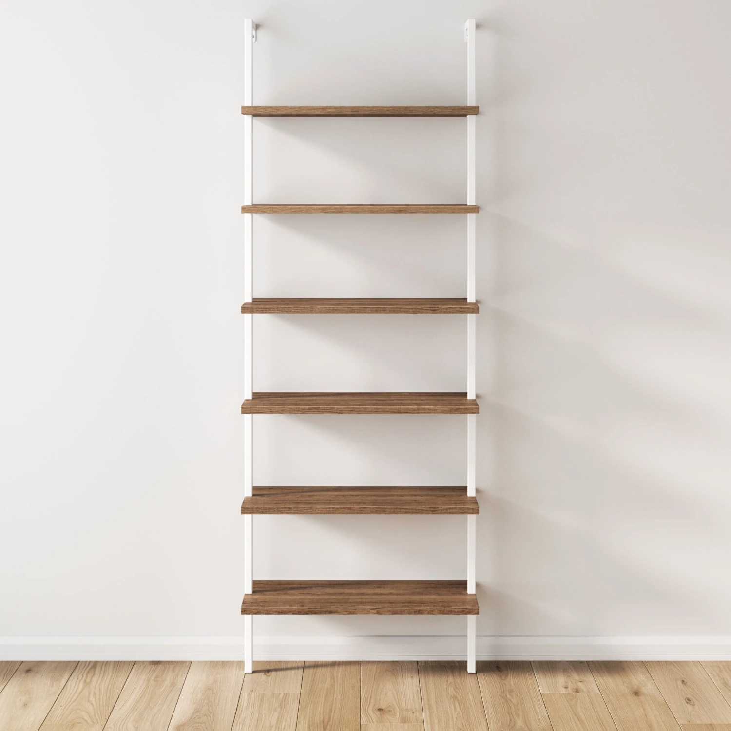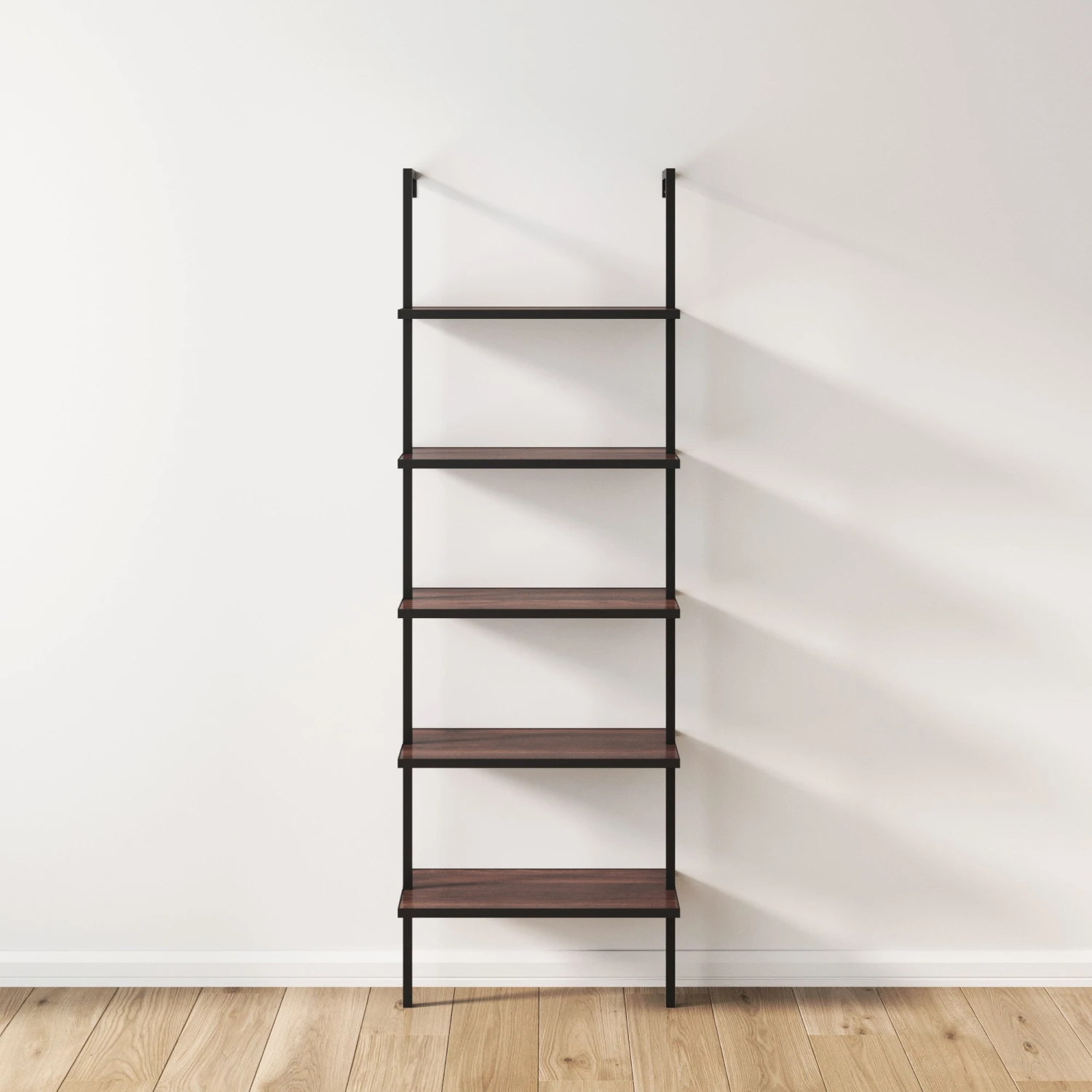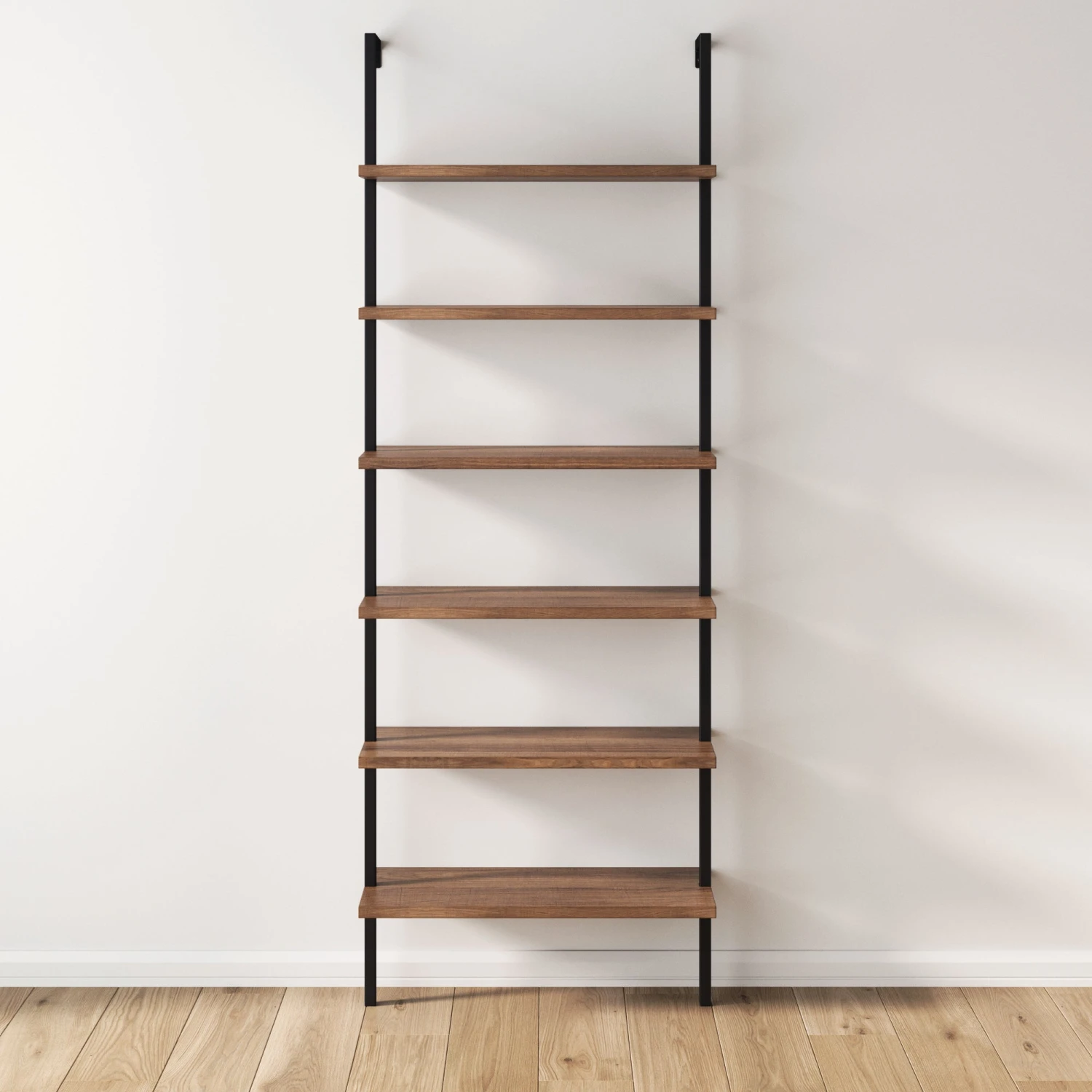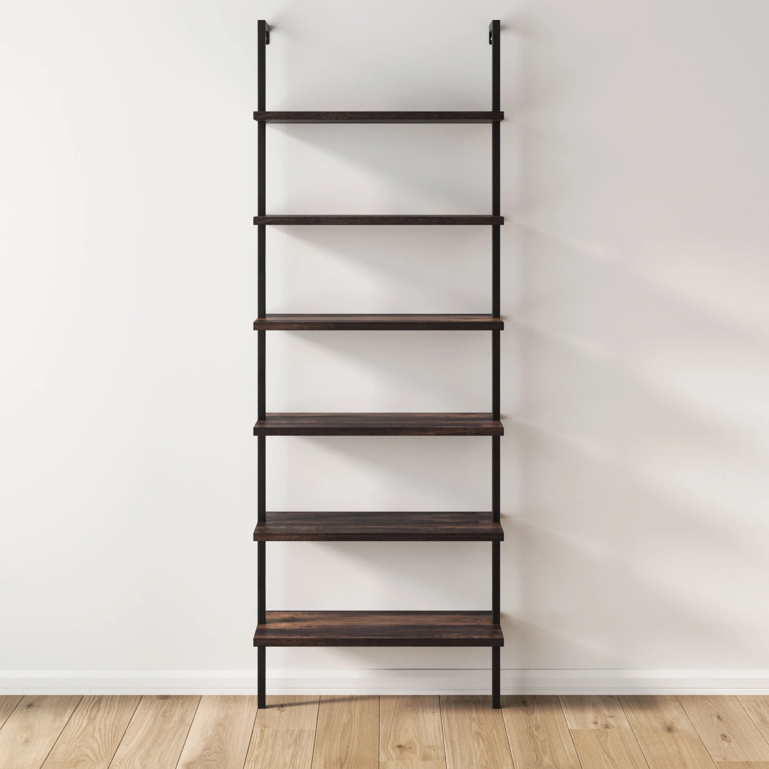 - This 6-tier tall, modern wall mount bookcase or shelving dresses up any space with its industrial style of wood and metal
