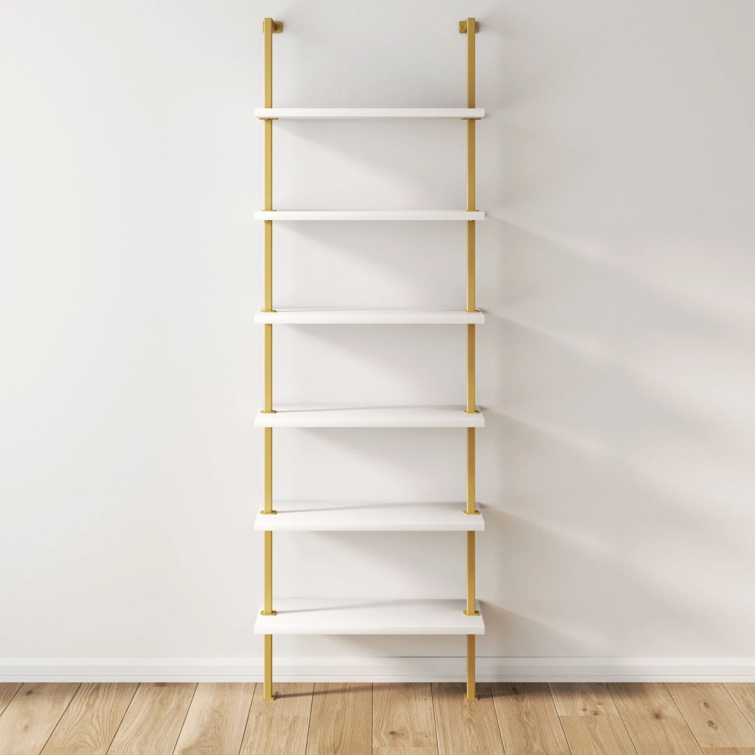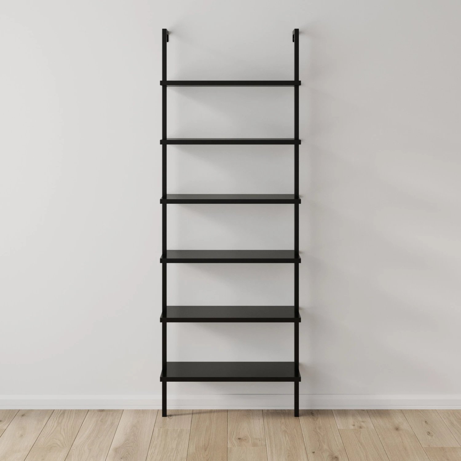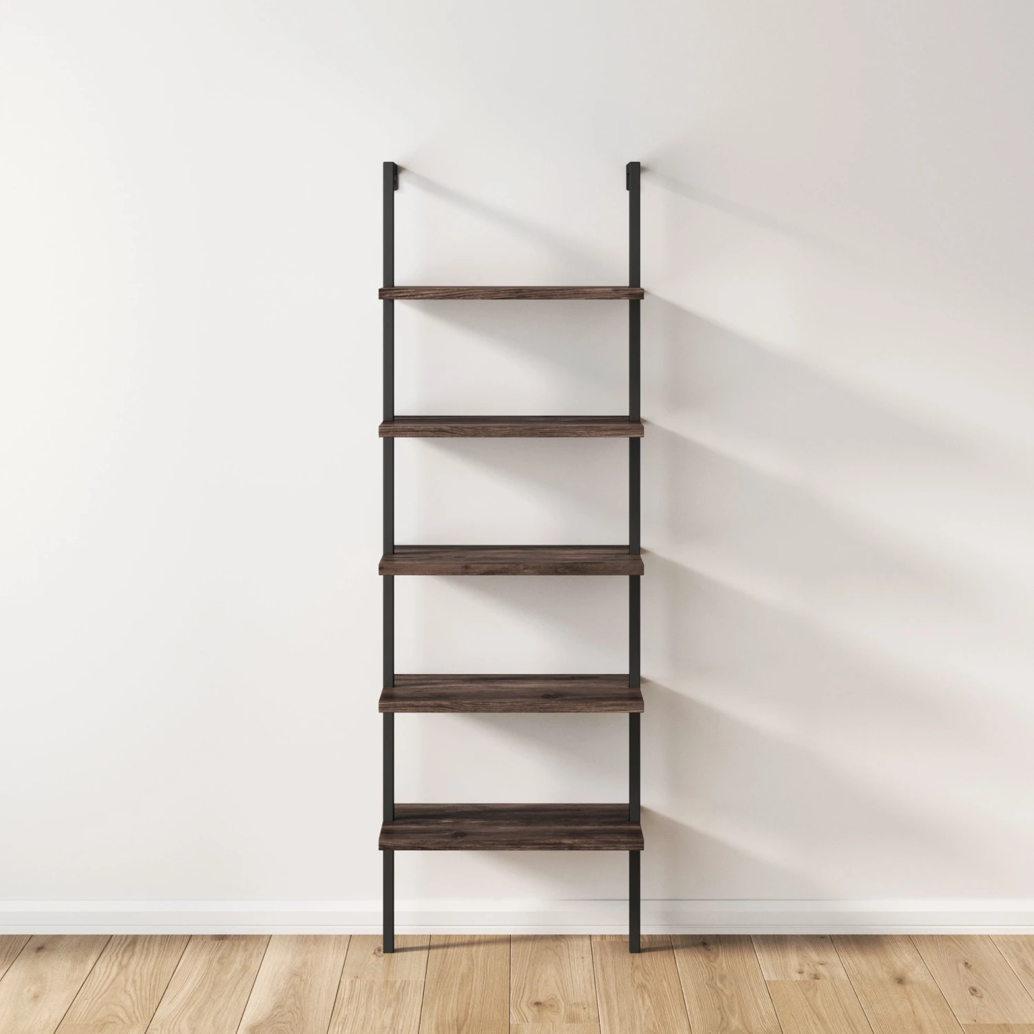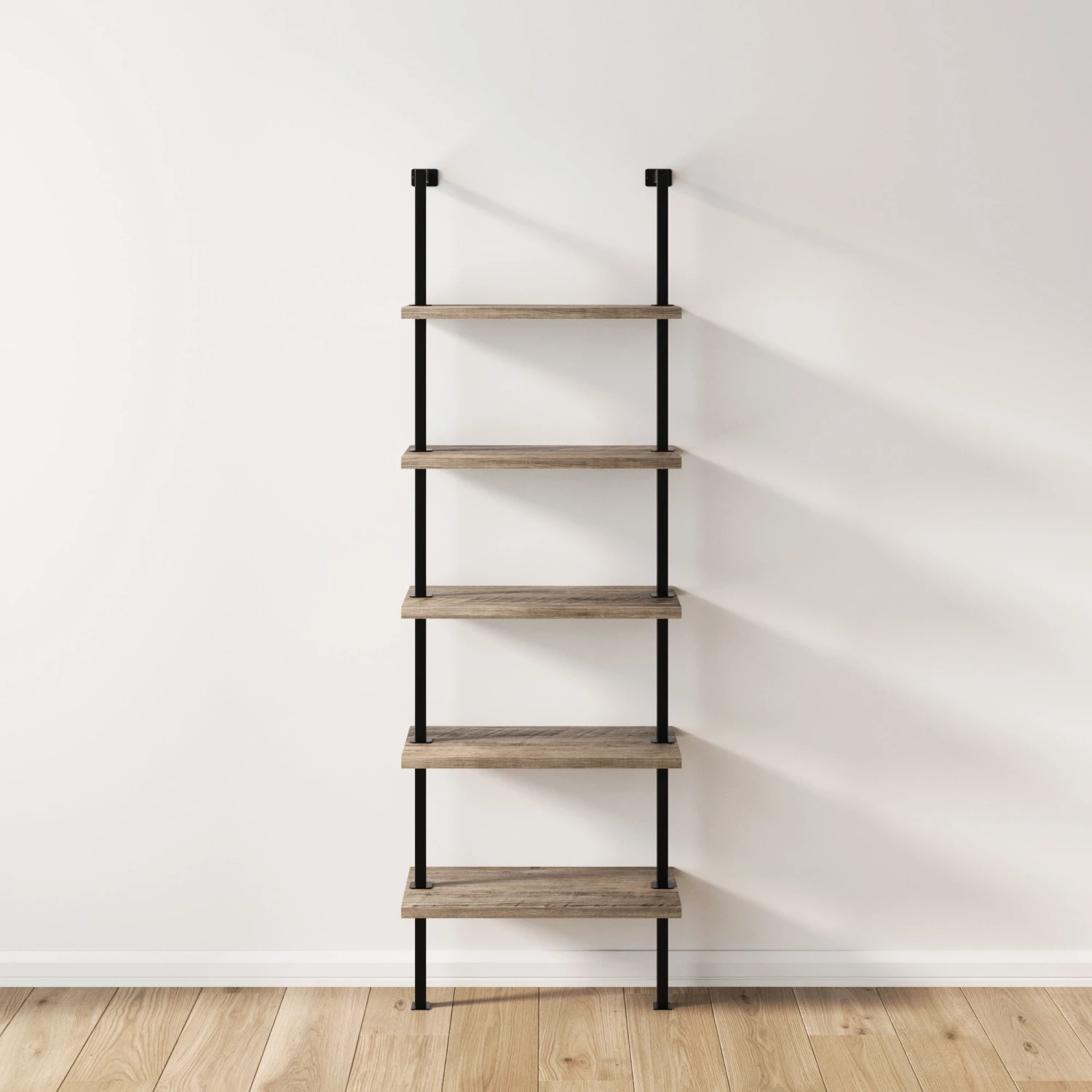 - This 6-tier tall, modern wall mount bookcase or shelving dresses up any space with its industrial style of wood and metal