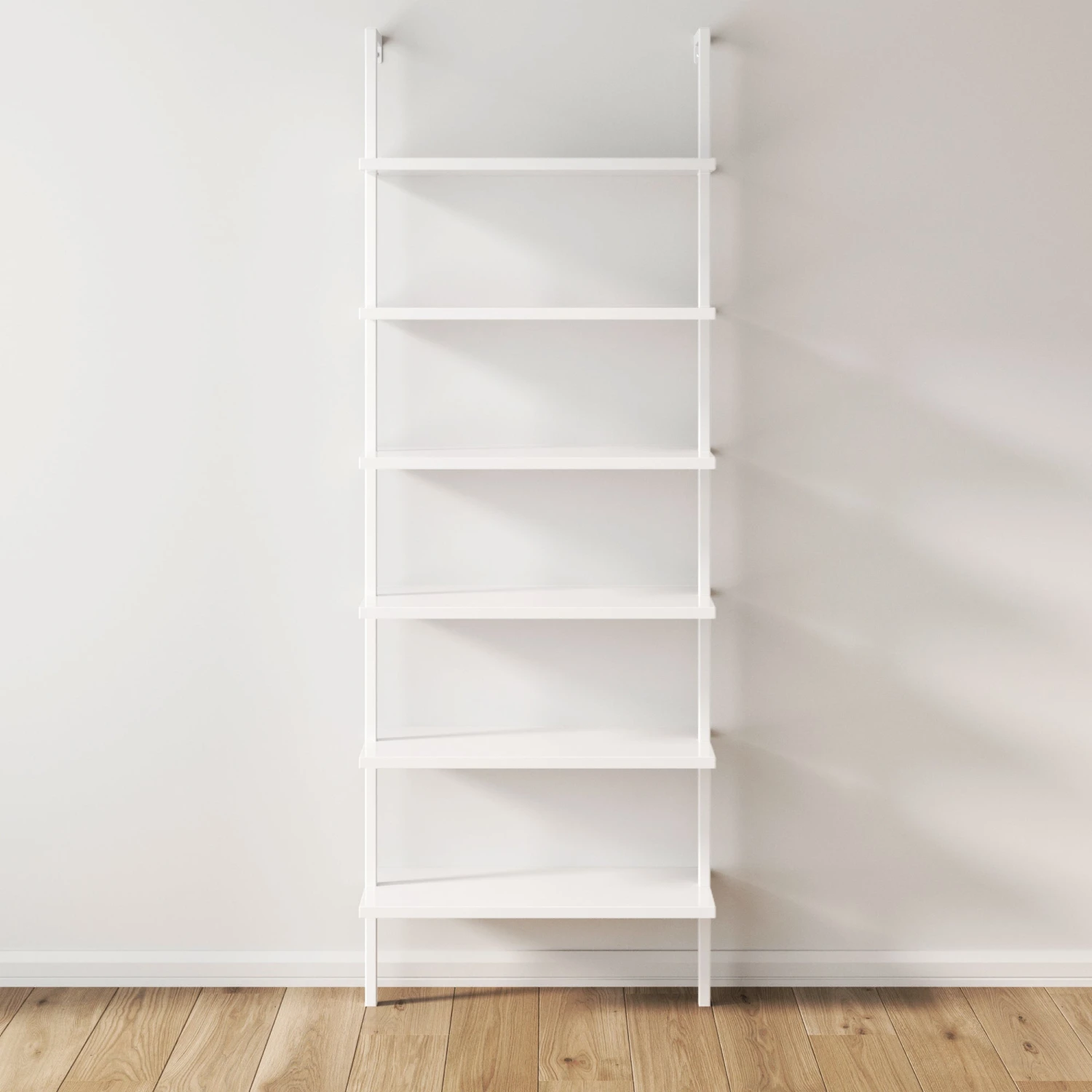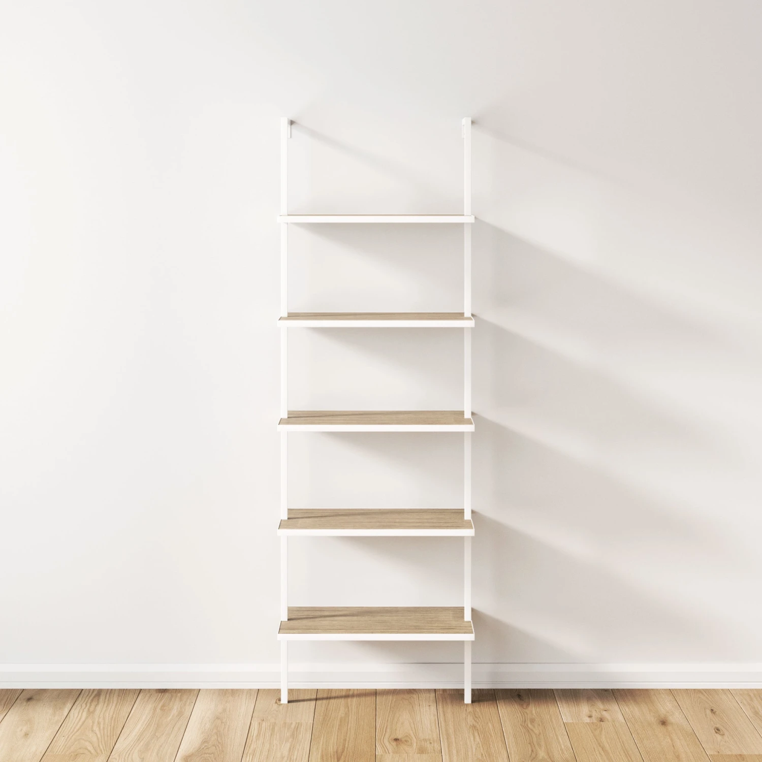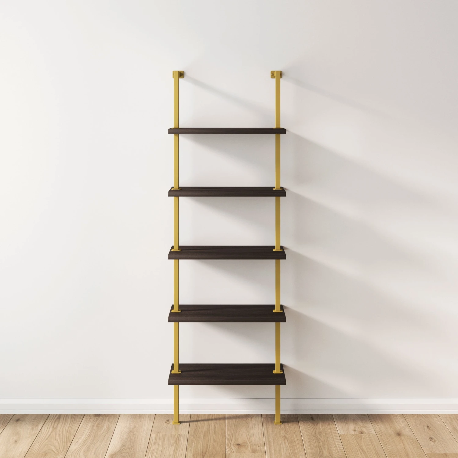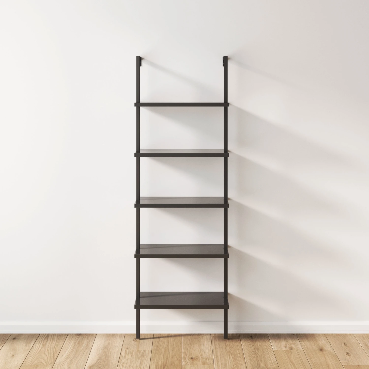 - This 6-tier tall, modern wall mount bookcase or shelving dresses up any space with its industrial style of wood and metal